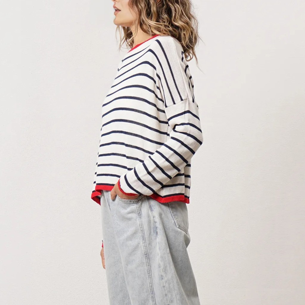 camisola de riscas em tricôt c/ algodão (jacquard)