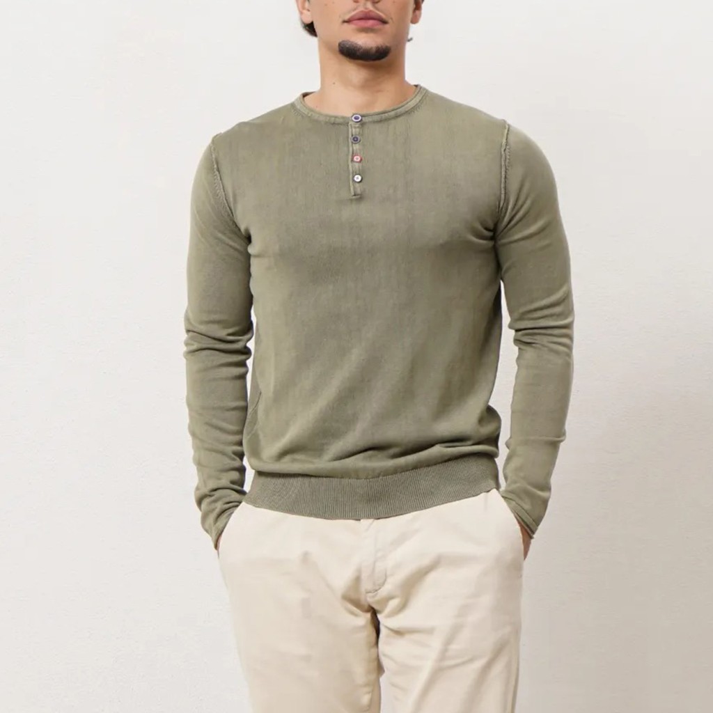 Cotton knit sweater with buttons