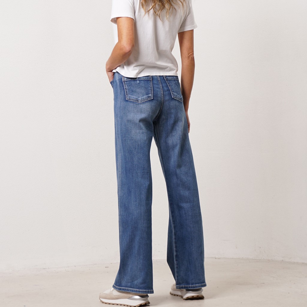 pantalonas em ganga c/ bolsos chapados