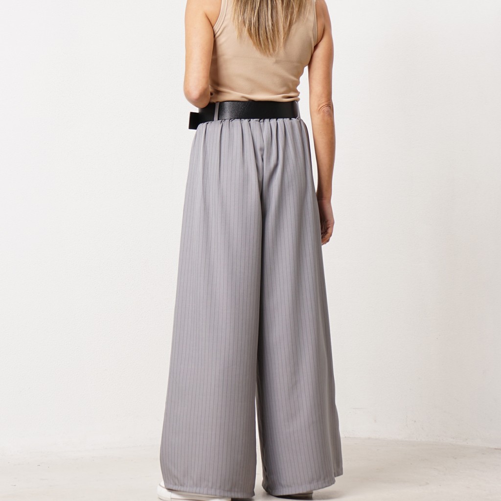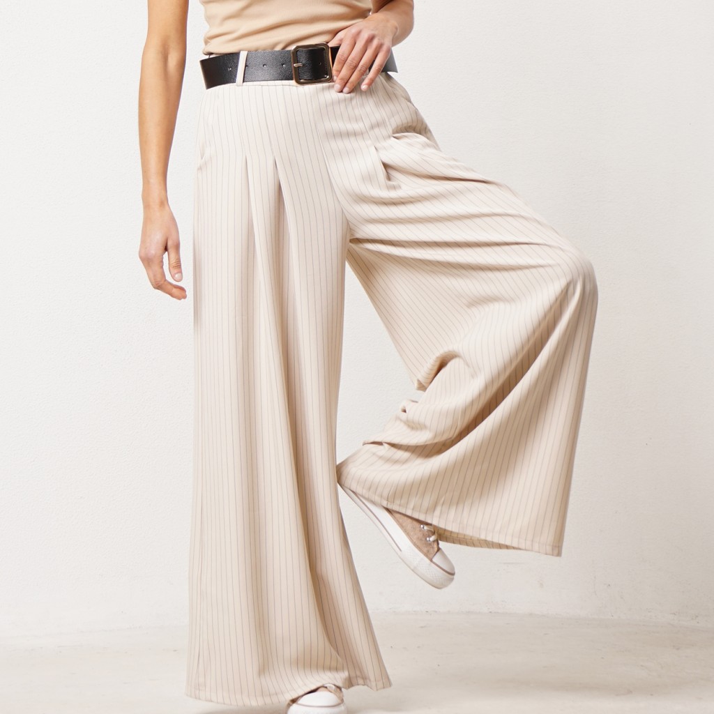 calça de riscas pata de elefante